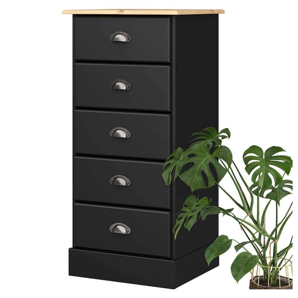 Hochkommode in Schwarz und Kieferfarben fünf Schubladen