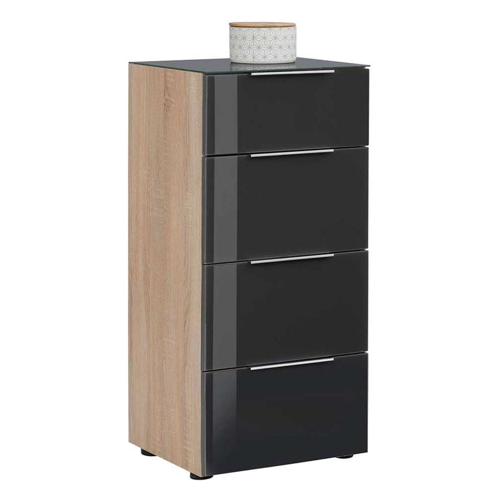 Informationen über Hohe Kommode in Anthrazit und Sonoma Eiche vier Schubladen