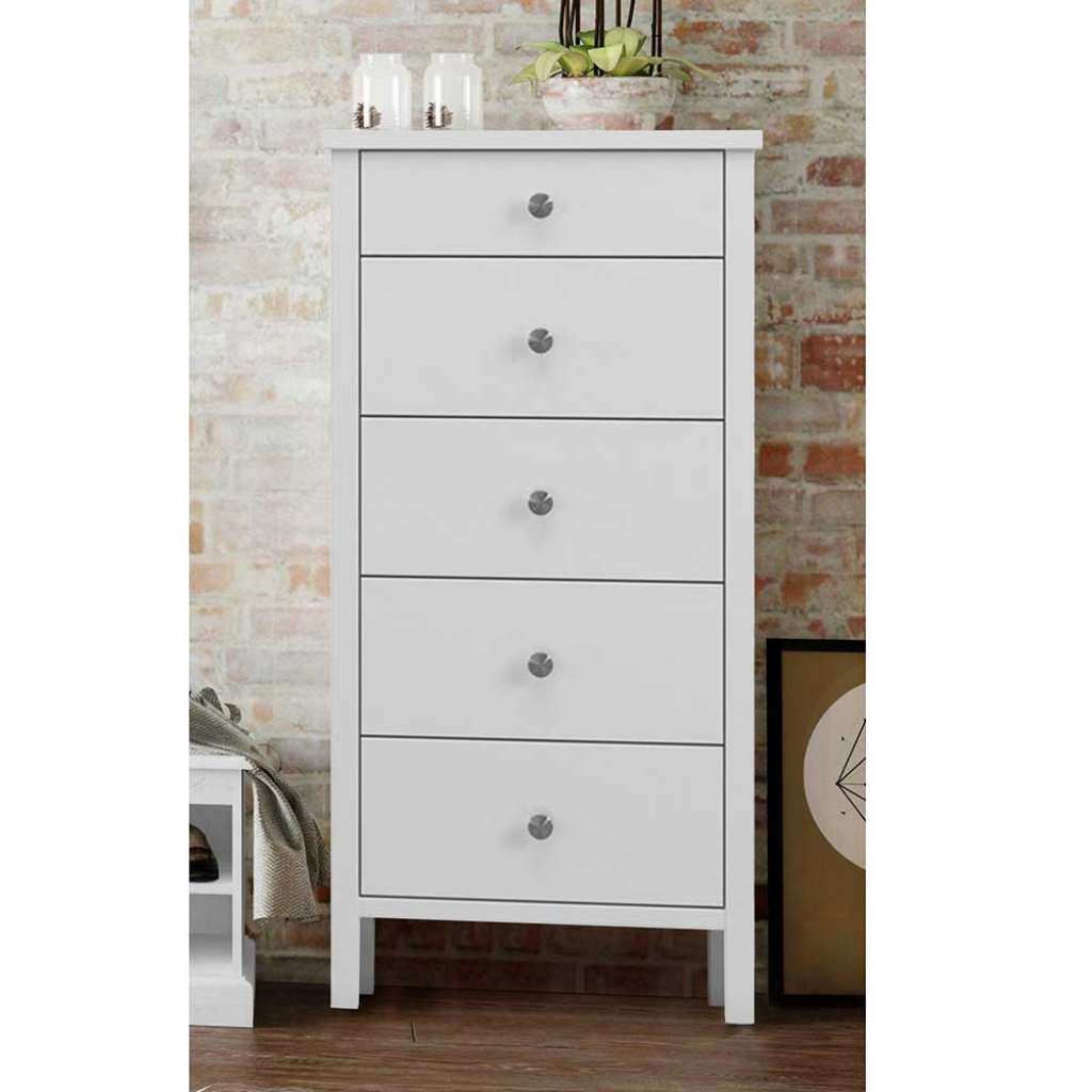 Informationen über Hohe Kommode in Weiß fünf Schubladen