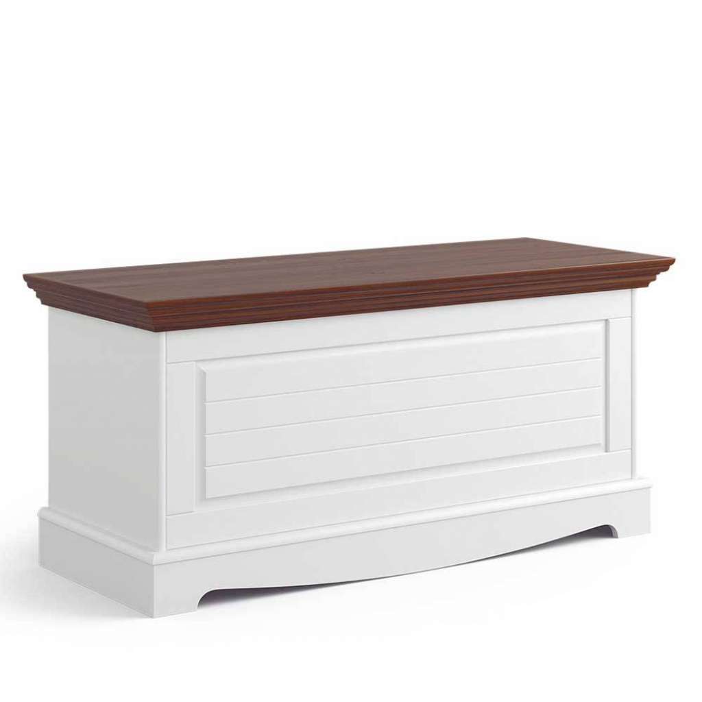 Holztruhe Dekotruhe in Weiß mit flachem Deckel - Mit flachem Deckel - Im Landhausstil - Zerlegt, zum leichten Selbstaufbau (Montageanleitung liegt bei) - Aus Kiefer Massivholz - In Weiß und Nussbaumfarben - Mit Massivholz Oberfläche Lackierung auf Wasserbasis - 112 cm Breit, 52 cm Hoch, 45 cm TiefInformationen zur Lieferung:Der Versand dieses Artikels erfolgt per DHL-Superservice. Dieses beinhaltet folgenden Service für Sie:Terminvereinbarung: Sie werden frühzeitig (ein paar Tage im Voraus) durch die ausliefernde Spedition kontaktiert und Ihnen der Auslieferzeitpunkt mitgeteilt. Die Kontaktaufnahme erfolgt per Telefon. Bei telefonischer Nichterreichbarkeit werden Sie per Postkarte über das Auslieferdatum informiert.Lieferung Frei Verwendungsstelle: Der Transport erfolgt an Ort und Stelle. Sie bestimmen, wohin Sie die Ware getragen haben möchten. Ob Dachgeschoss, Erdgeschoss, Schlaf- oder Wohnzimmer - die Ware wird an den von Ihnen gewünschten Ort vertragen.Zwei Speditionsfahrer vertragen die Ware: keine Mithilfe beim Entladen und Vertragen der Ware nötig. Die Speditionsfahrer sind auf den Möbeltransport spezialisiert und entsprechend geschult, somit sind Transportreklamationen nahezu ausgeschlossen.Die Auslieferung erfolgt von Montags bis Freitags. Eine Zustellung an Sonn- und Feiertagen ist nicht möglich.Alle aufgeführten Serviceleistungen sind im Artikelpreis enthalten. Es fallen keine weiteren Kosten für Sie an. Bei Insellieferungen kann nur ein reiner Abgabeservice angeboten werden - das Vertragen der Ware + Verpackungsentsorgung entfällt hierbei.