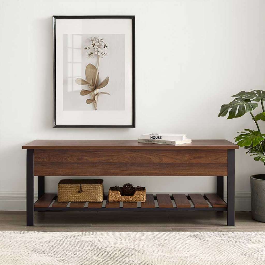 Garderobenbank Flur in Holzoptik Walnussfarben Truhe