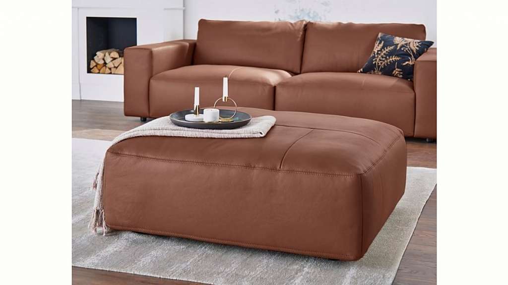 Polsterhocker Lucia in 5 Bezugsqualitäten. groß, Kontrastnaht, Kreuzstichoptik