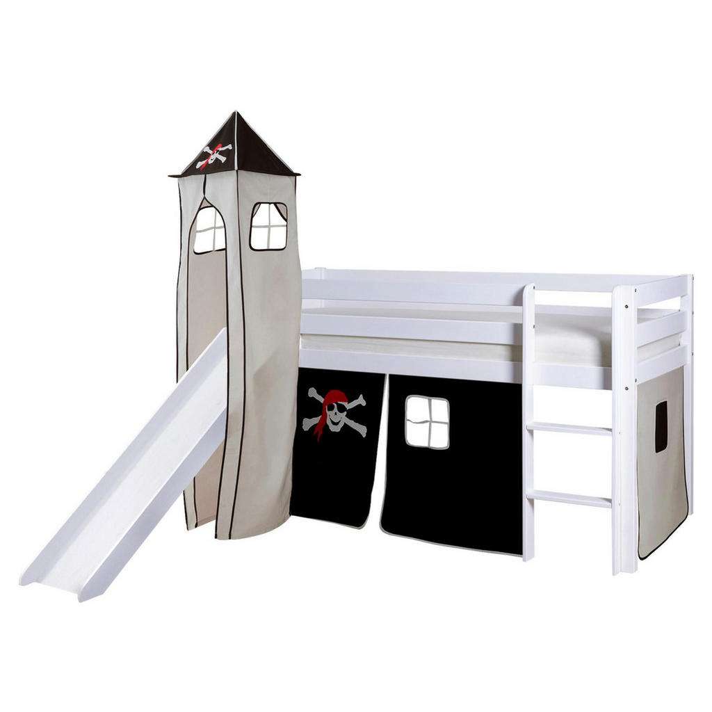 SPIELBETT Kiefer massiv 90/200 cm Schwarz, Weiß