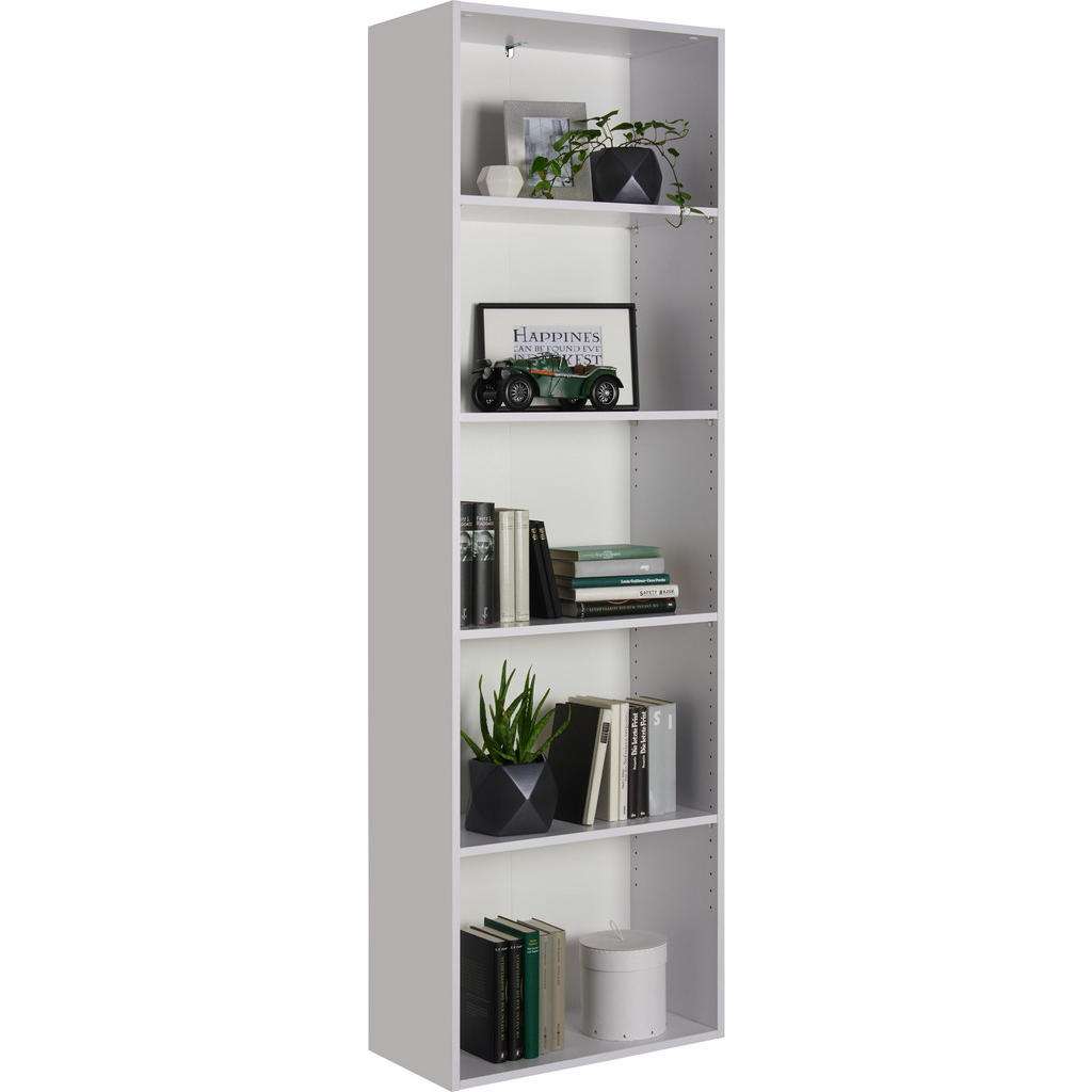 Ob Esszimmer, Küche oder Wohnzimmer: Dieses Regal können Sie dank schlichtem Design in strahlendem Weiß perfekt in Ihrem Wohnraum integrieren. Viel Platz für Bücher, Ordner und chice Accessoires bieten die 5 offenen Fächer. Dabei ermöglichen die 4 verstellbaren Einlegeböden eine individuelle Einteilung ganz nach Ihren Bedürfnissen. Bringen Sie mit diesem Regal alles unter Dach und Fach!