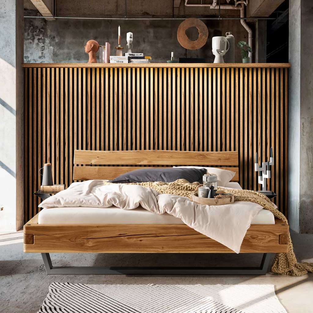 Doppelbettgestell Massivholzbett in Wildeichefarben mit Bügelgestell
