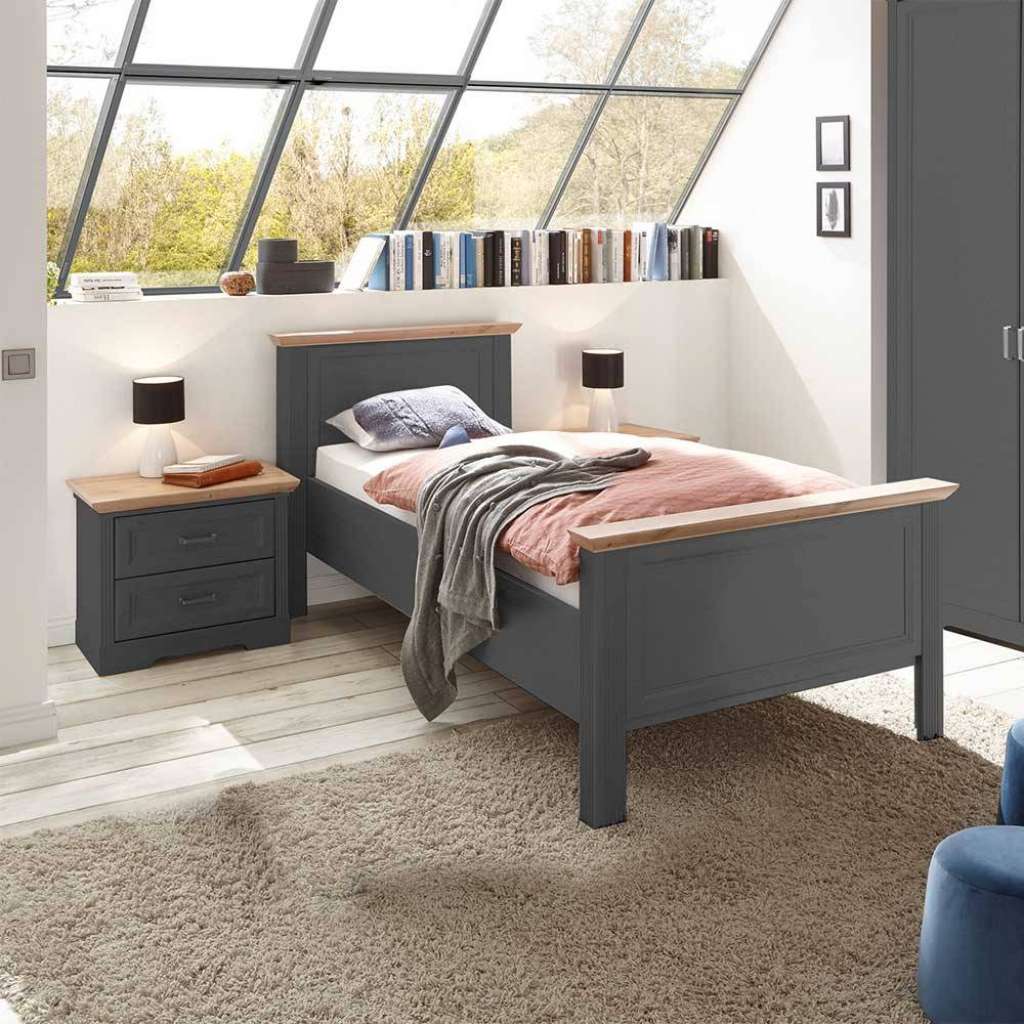 Einzelbett in Dunkelgrau Wildeichefarben