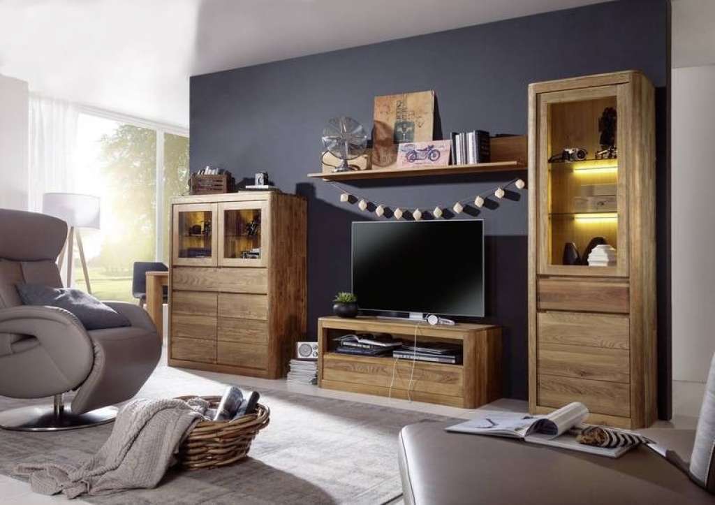 Informationen über LINZ Wildeiche massiv geölt Wohnwand #900 natur vollmassiv modern