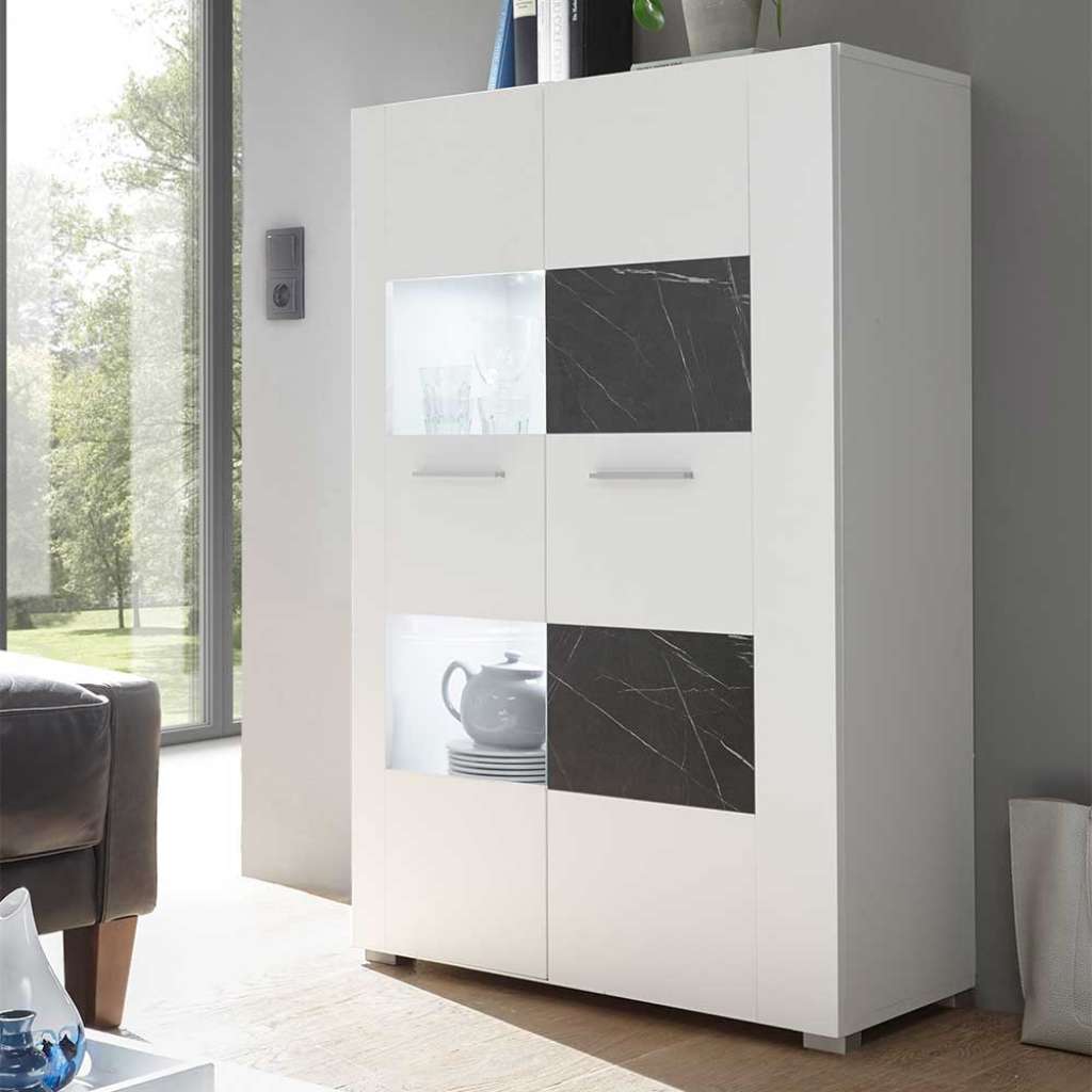 Esszimmer Highboard mit Glas Weiß & Anthrazit Marmoroptik