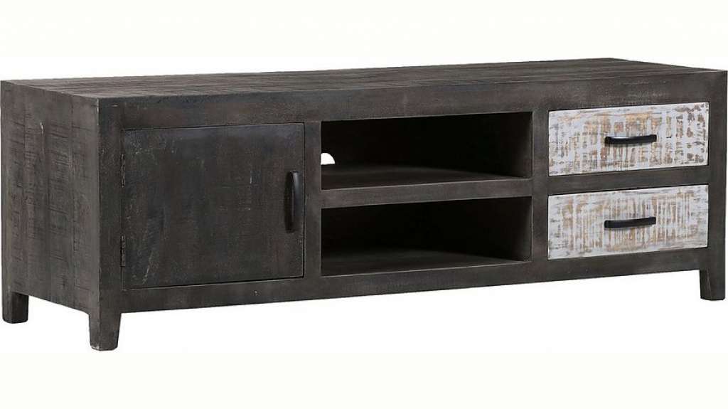 Das Lowboard »Chicco« von Gutmann Factory mit hell abgesetzten Fronten begeistert durch sein ansprechendes Design im Kolonialstil. Die Anrichte ist aus einem recycelten, massiven Mangoholz gefertigt, das aus einer FSC®-zertifizierten Produktion stammt. Die besonderen Highlights sind die dekorativen Farbkontraste sowie die schicken Griffe aus Metall. Neben der Optik punktet das Lowboard durch sein Stauraumkonzept: Hinter der Schranktür sowie in den Schubladen befindet sich reichlich Stauraum. Abgerundet wird das Ordnungssystem durch die offenen Fächer sowie die breite Ablagefläche. Dank der praktischen Kabeldurchführung kann das Möbelstück auch als TV-Bank verwendet werden.