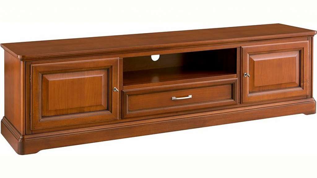 Natürliche Materialien, edle Formen, Eleganz und ein weltoffener Stil: unvergessliche Momente, welche sich mit Leichtigkeit in jede Einrichtung einfügen. Die Kollektion VILLA CINQUANTA ist Ausdruck italienischer Handwerkskunst. TV Möbel, klassischer Stil. 1 Fach, 1 Lade, Schubladenführung mit Selbsteinzug. 2 Türen, innen 1 verstellbarer Holzeinlegeboden. Masivteile in Linde, Kirschbaum furniert.