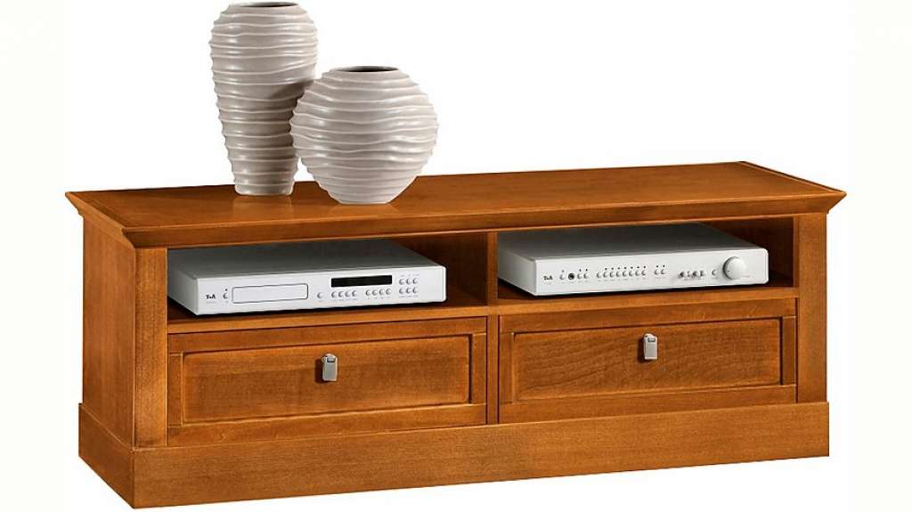 Die Firma SELVA steht für höchste Kreativität, einzigartige Vielfalt, italienische Handwerkskunst in Vollendung und - individuelle Einrichtungskonzepte. Sie können auswählen aus einer großen Vielfalt an Produkten, Farben und Holzarten. Die Möbel sind dabei ganz speziell für all jene gedacht, die ein klassisches, elegantes Flair lieben. Die neue Kollektion »Sophia« ist ein Zusammenklang von Sinnlichkeit und Eleganz, schnörkellos und doch verspielt heiter. Grazile Leichtigkeit und eine klare, kubische Formensprache prägen den Charakter von »Sophia«. Das bewusst reduzierte, zeitlos-schöne Design mit klarer Linienführung ist eine neue Interpretation klassischer Elemente, die eine selbstbewusste Zurückhaltung mit moderner Eleganz vereint. Ein Stück erlesene Handwerkskunst, die Tradition und Moderne verbindet. Das TV Lowboard »Sophia« 5406 hat zwei Schubkästen mit Selbsteinzug und zwei offene Fächer für Ihre Mediengeräte. Maße (B/T/H): 131/45/48 cm . Details: 2 Schubkästen. Schubkasteninnenmaße (B/T/H): ca. 56/29/15 cm. 2 Fächer. Fachinnenmaße (B/T/H): ca. 56/38/13 cm. Italian Design. Das Holz ist gebeizt. In hochwertiger Verarbeitung. Schubkästen mit Soft-Close-Funktion. Metallgriffe, Farbe: Chrom. Laufleisten und Scharniere aus Metall. Maße: Maße (B/T/H): 131/45/48 cm. Alle maße sind ca.-Maße (inkl. Fußhöhe). Informationen zu Lieferumfang und Montage: Inklusive Aufbau- & Premiumservice. Material: Massivteile: Linde. Furnierte Flächen: Kirschbaum furniert. Wissenswertes: Sie möchten mehr erfahren über die Firma SELVA, ihre Produkte und deren besondere Merkmale? Benötigen Sie eine umfassende Beratung zu Ihren Möbeln von SELVA? Unter der Telefonnummer 01806-21 22 91 erreichen Sie unsere Premium-Möbelberatung, Montag bis Freitag 08-22:00 Uhr, Samstag 09-19:00 Uhr (Festnetz 20 Cent/Anruf Mobilfunk max. 60 Cent/Anruf). Pflegehinweise: Regelmäßige Reinigung (Staubwischen). Wasser und Alkohol müssen rasch abgewischt werden.Verwenden Sie keine aggressiven Reinigungs- oder Lösungsmittel, da diese die Möbeloberfläche angreifen und zerstören können. Ausschließlich Auflagen aus 100%iger Baumwolle benutzen, da die Lackoberflächen mit Kunststoffdecken unter ungünstigen Umständen chemisch reagieren können. Der Kontakt mit Wärmequellen wie Rechauds oder heißem Geschirr ist zu vermeiden.