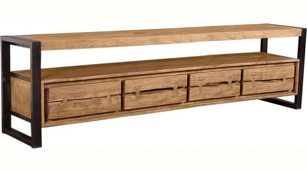 TV-Lowboard aus Akazienholz . LIVE EDGE – so wohnt man heute, denn das ist die perfekte Kombination natürlicher Materialien mit der Coolness einer Loft-Wohnung in New York. Ausgewählte Akazie, handwerklich anspruchsvolle Verarbeitung, markante Akzente und die Abkehr von Normalität und Langeweile sorgen für den besonderen Look, den Sie mit 08/15-Möbeln nicht erreichen. Schwalbenschwanzverbindungen und die Verarbeitung der Kantenform des Holzes wie es die Natur hat wachsen lassen, ein warmer Erdton als wärmender Kontrapunkt zur Kälte des Metalls im Used-Look, das macht den Industrial-Stil so gemütlich und wohnbar. Details: 1 Fach. 4 Schubladen. Tolle Holzoptik. Extravagantes Design. Individuell zu kombinieren. In hochwertiger Verarbeitung. Das Holz ist Akazie. FSC®-zertifiziert. Generelle Maße: Außenmaße (B/T/H): 200/40/55 cm. Alle Maße sind ca.-Maße. Material: Korpus: Massivholz Akazie. Front: Akazie. FSC®-zertifiziertes Massivholz. FSC®-zertifiziertes Holz: Das Label des FSC® weist nach, dass Sie mit dem Kauf dieser Produkte vorbildlich Waldwirtschaft - nach den strengen ökologischen, sozialen und wirtschaftlichen Standards des Forest Stewardship Council® - fördern und die Waldressourcen schonen. Informationen zu Lieferumfang und Montage: Wird aufgebaut geliefert.