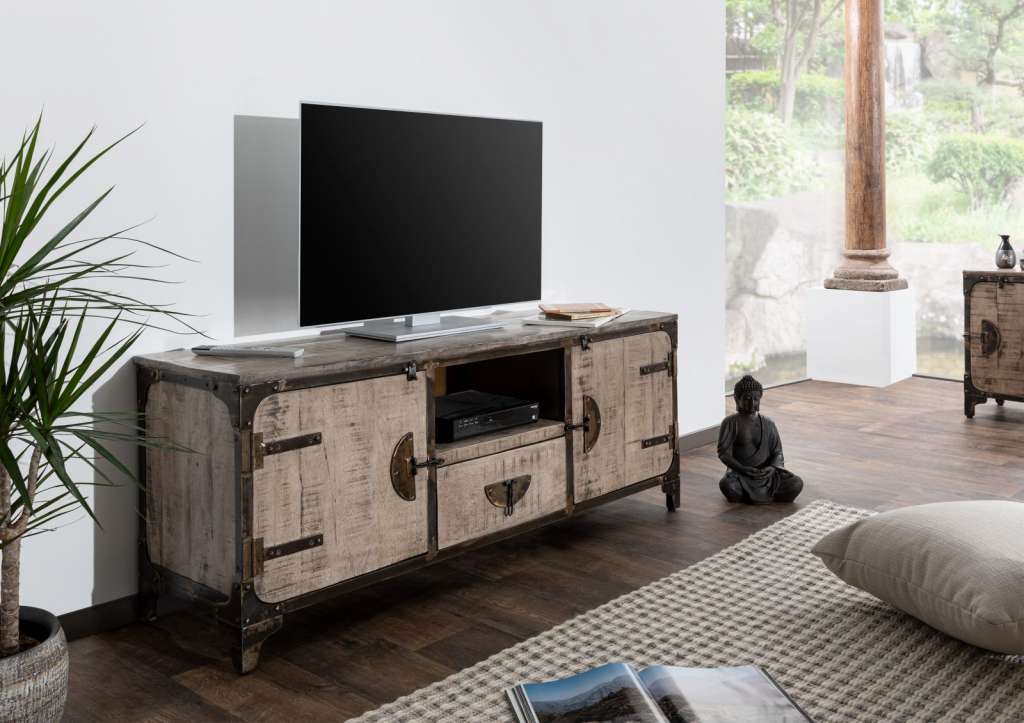 Informationen über TV-Board Mango 150x40x60 braun lackiert HEAVY INDUSTRY #229