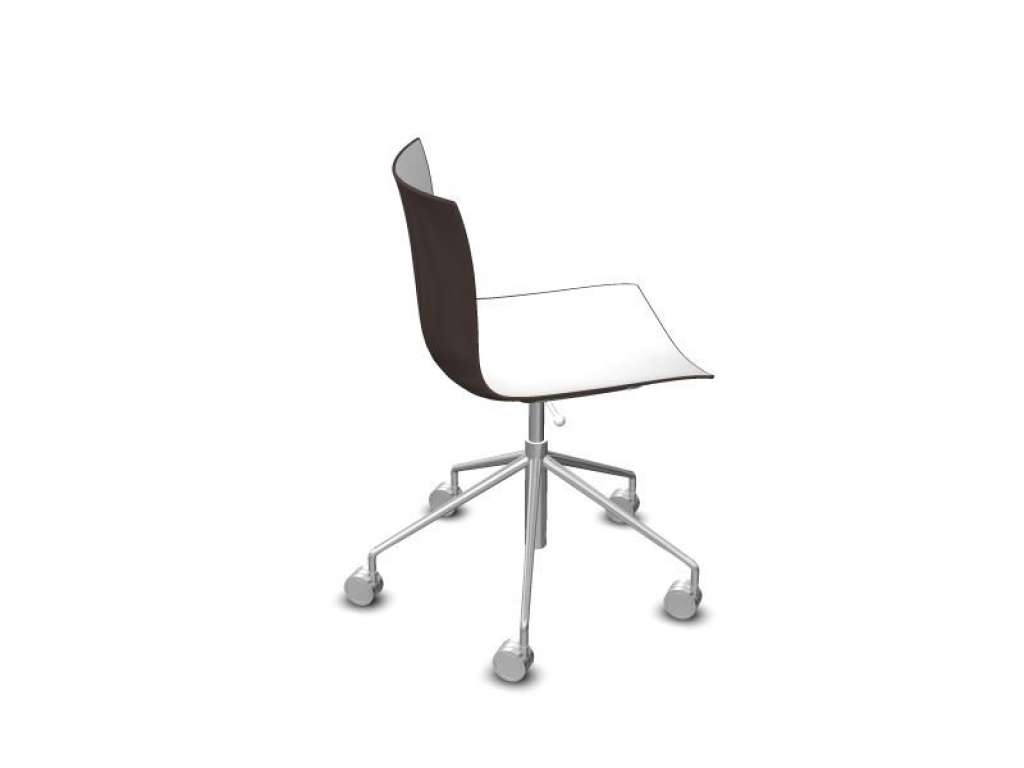Der Catifa 46 - 0294 steht auf einem 5-strahligem Sternfuß aus verchromten Stahl und Rollen. Die Sitzfläche ist aus Polypropylen gefertigt und in den Ausführungen einfarbig oder bicolor erhältlich.