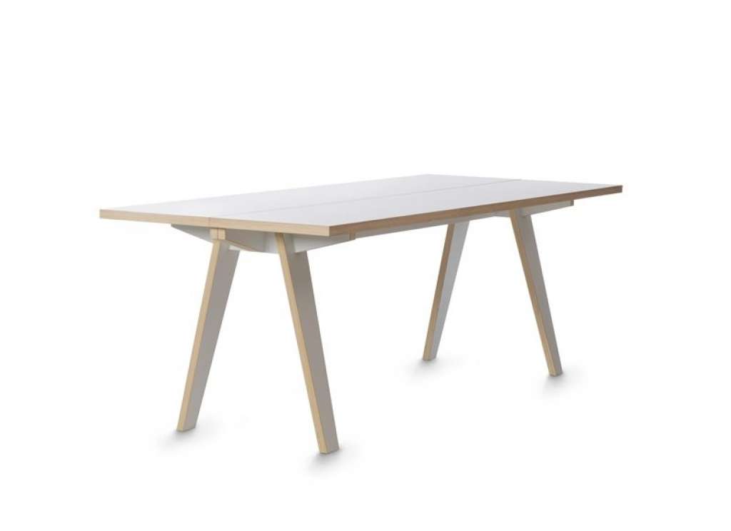 Der Steck Tisch wurde von dem schweizer Designkollektiv eigenwert, das aus dem Grafik-Designer Lars Villiger und dem Möbelschreiner Andreas Pfister besteht, für den deutschen Hersteller Tojo entworfen. Dieser Steck Tisch von Tojo tritt mit seinen klaren, geraden Linien in den Vordergrund. In einem sanften Weiß passt er sich in fast jede Umgebung ein. Die Tischbeine sind leicht gewinkelt und somit entsteht ein fließendes Gesamtdesign. Der Steck Tisch wird aufgebaut, indem seine Einzelteile einfach zusammengesteckt werden. Mit nur 8 Schrauben wird abschließend alles fixiert. Aufgrund der zweiteiligen Tischplatte kann der Steck Tisch von Tojo platzsparend transportiert und gelagert werden. Besonderheiten -Material: Birke Multiplex, HPL beschichtet, weiß -Gewinner des Interior Innovation Awards 2012