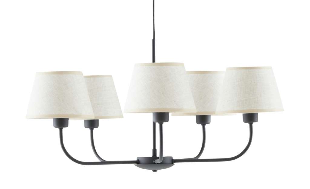 Kronleuchter, 5-flammig, schwarz mit Leinenschirmen ¦ schwarz Ø: 70 Lampen & Leuchten > Innenleuchten > Pendelleuchten - Höffner