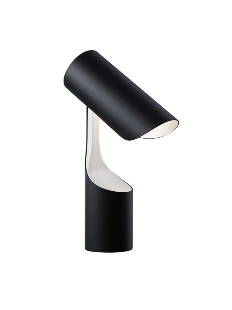 Mutatio ist der Name der außergewöhnlichen Tischleuchte von Le Klint. Und dieser Name ist Programm - Christian Troels gelingt mit seinem Entwurf ein vom Stil her nicht exakt zu verortendes Lichtobjekt, welches in geschlossenem Zustand einer schwarzen Röhre gleicht, geöffnet jedoch sein weißes Innenleben und seinen Zweck zu erkennen gibt.Die Leuchte ist aus zweifarbigem, pulverbeschichtetem Stahl hergestellt und besitzt eine Fassung für Leuchtmittel der Größe E14. (max. 7 Watt LED)