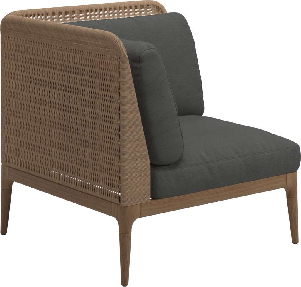 Gloster - Lima End-/Eckmodul Low Back - links - Gestell: Teak, Wheat Wicker - Blend Coal - outdoor