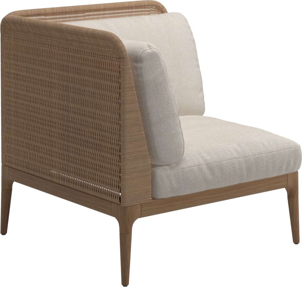 Gloster - Lima End-/Eckmodul Low Back - links - Gestell: Teak, Wheat Wicker - Virtue Cloud - outdoor