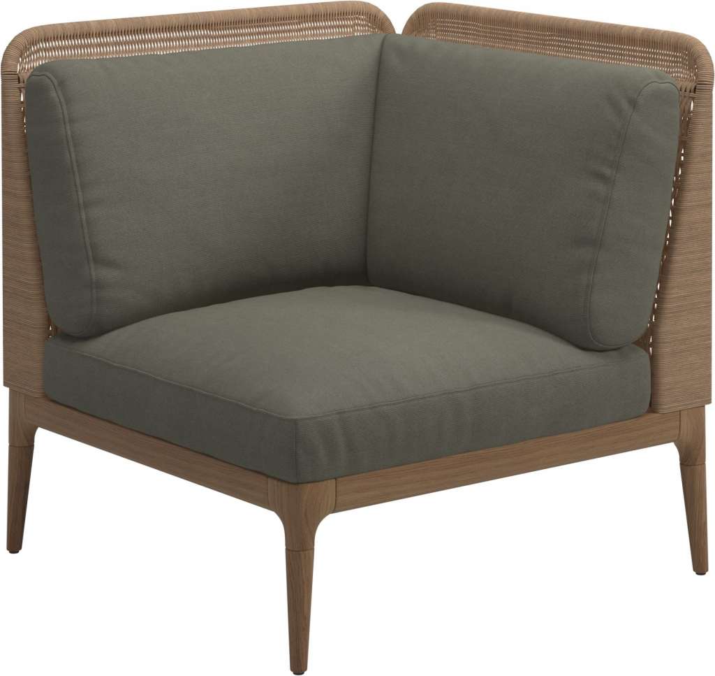 Gloster - Lima End-/Eckmodul Low Back - rechts - Gestell: Teak, Wheat Wicker - Fife Lichen - outdoor