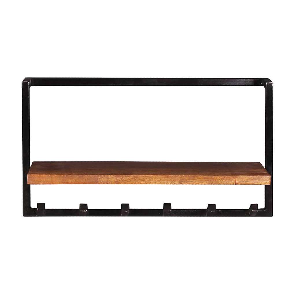 Hängegarderobe aus Metall und Mangobaum Massivholz 6 Kleiderhaken