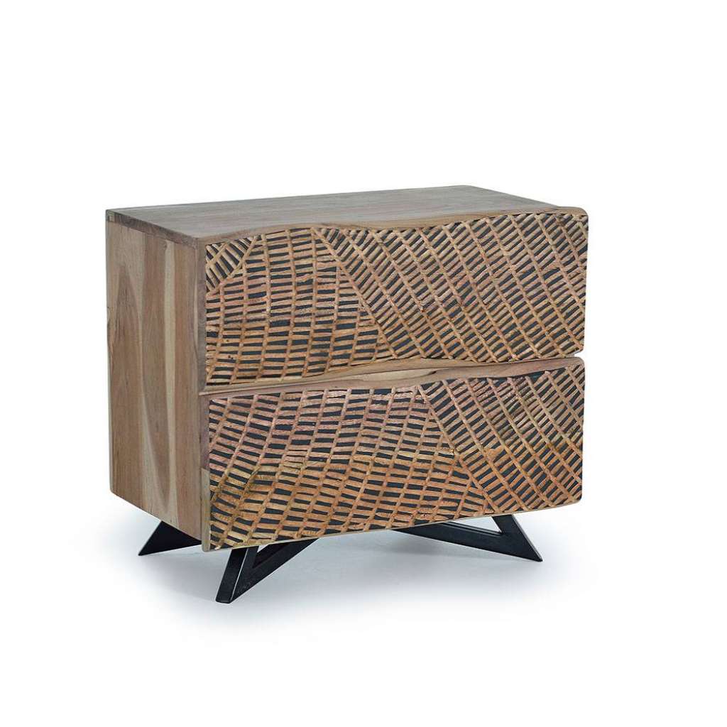 Kommode Nachtkommode aus Akazie Massivholz mit zwei Schubladen