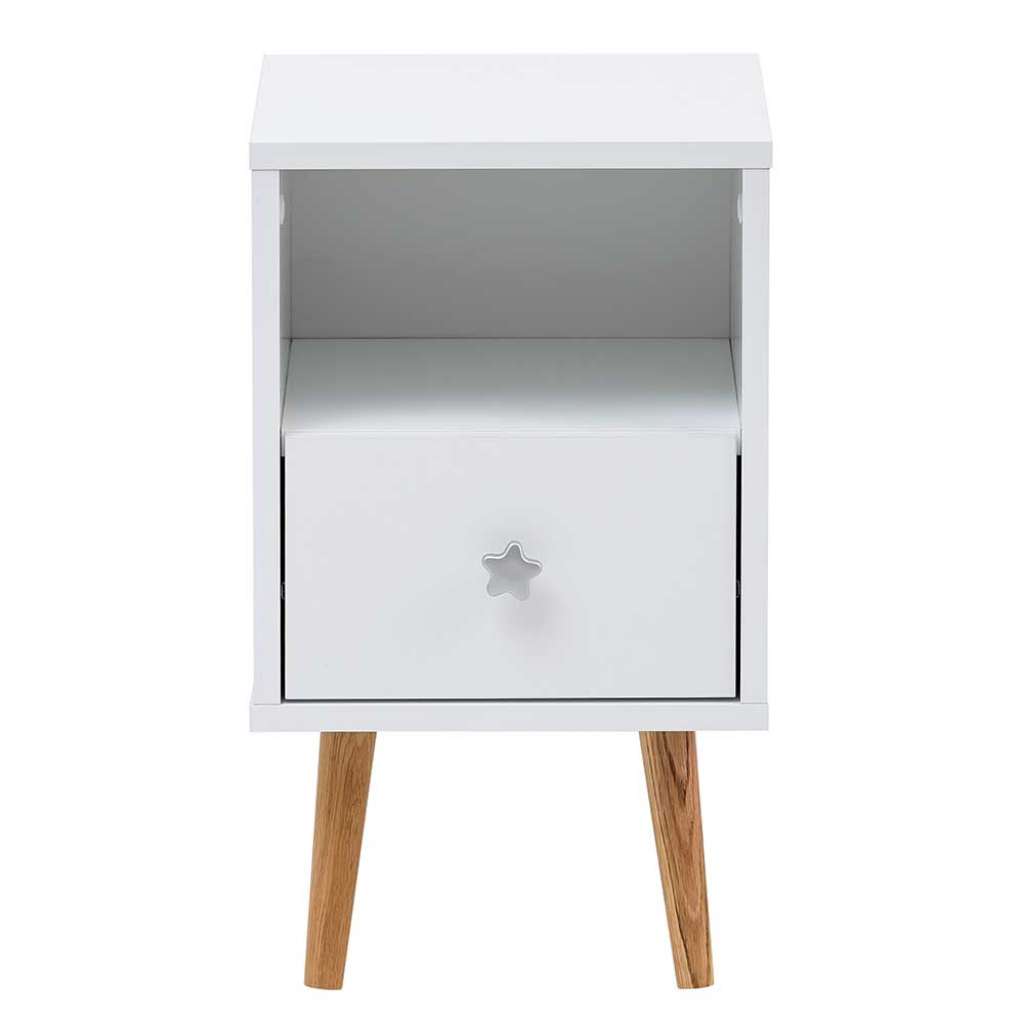 Informationen über Skandi Nachtkonsole in Weiß Vierfußgestell aus Holz