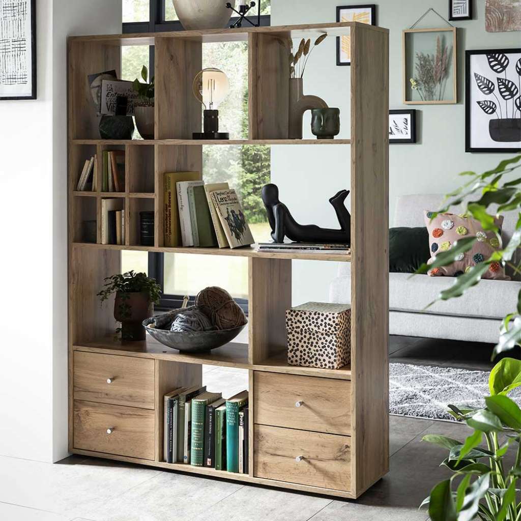 Raumtrennwand mit vier Schubladen Wildeichefarben