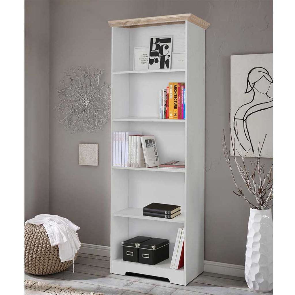 Buchregal in Weiß und Eiche Optik 75 cm breit