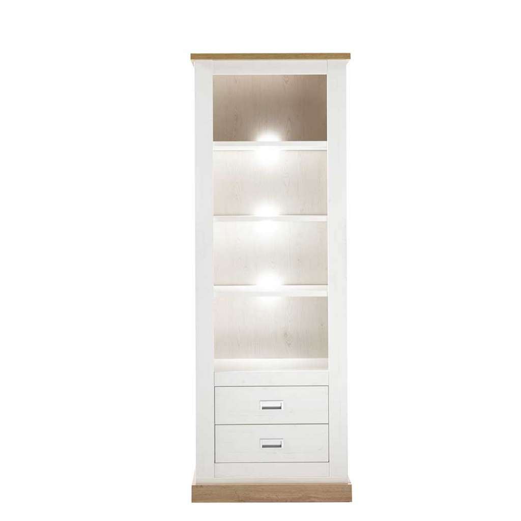 Landhausregal in Weiß und Wildeiche Optik zwei Schubladen