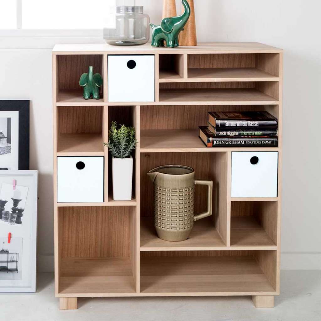 Regal aus Paulownia Massivholz drei weißen Schubladen