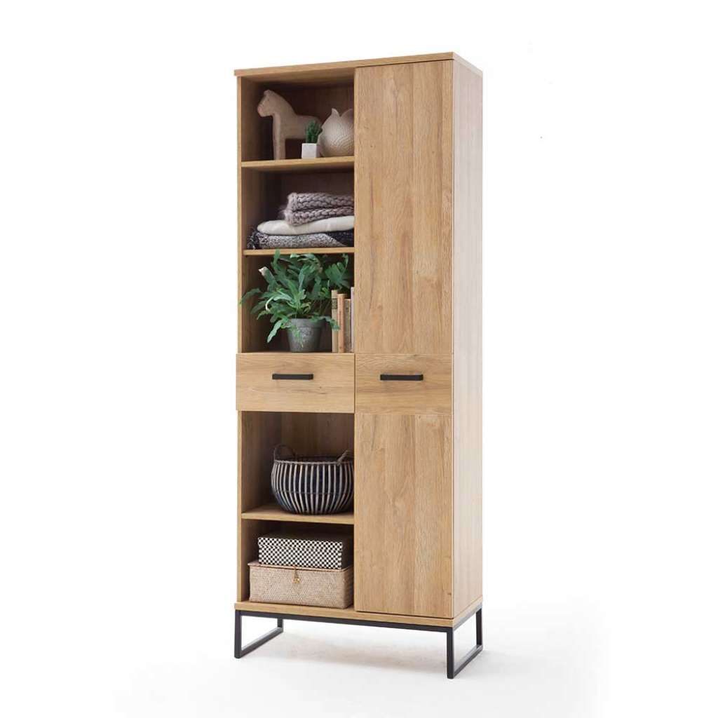 Regal in Wildeichefarben und Schwarz Schublade und Tür