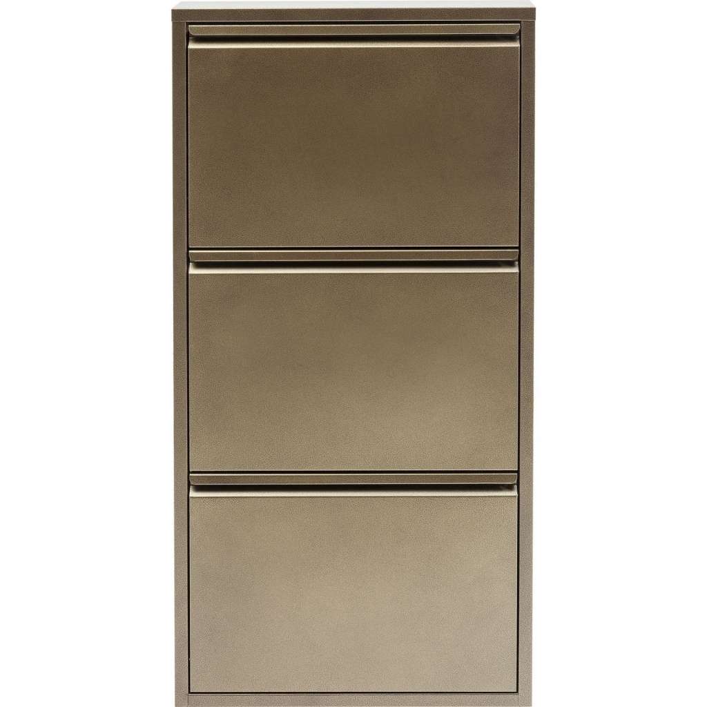 Schuhe vor der Tür? Oder auf der Treppe verteilt? Nö, lieber nicht. Der Schuhschrank setzt dem Chaos ein Ende. Drei geräumige Kippfächer bieten jede Menge Stauraum und Schutz vor Staub. Und dank der Kippschubladen lässt sich leicht Ordnung schaffen. Mit der pulverbeschichteten Oberfläche in edlem Bronze sorgt Caruso für Stil im Flur oder Ankleidebereich.