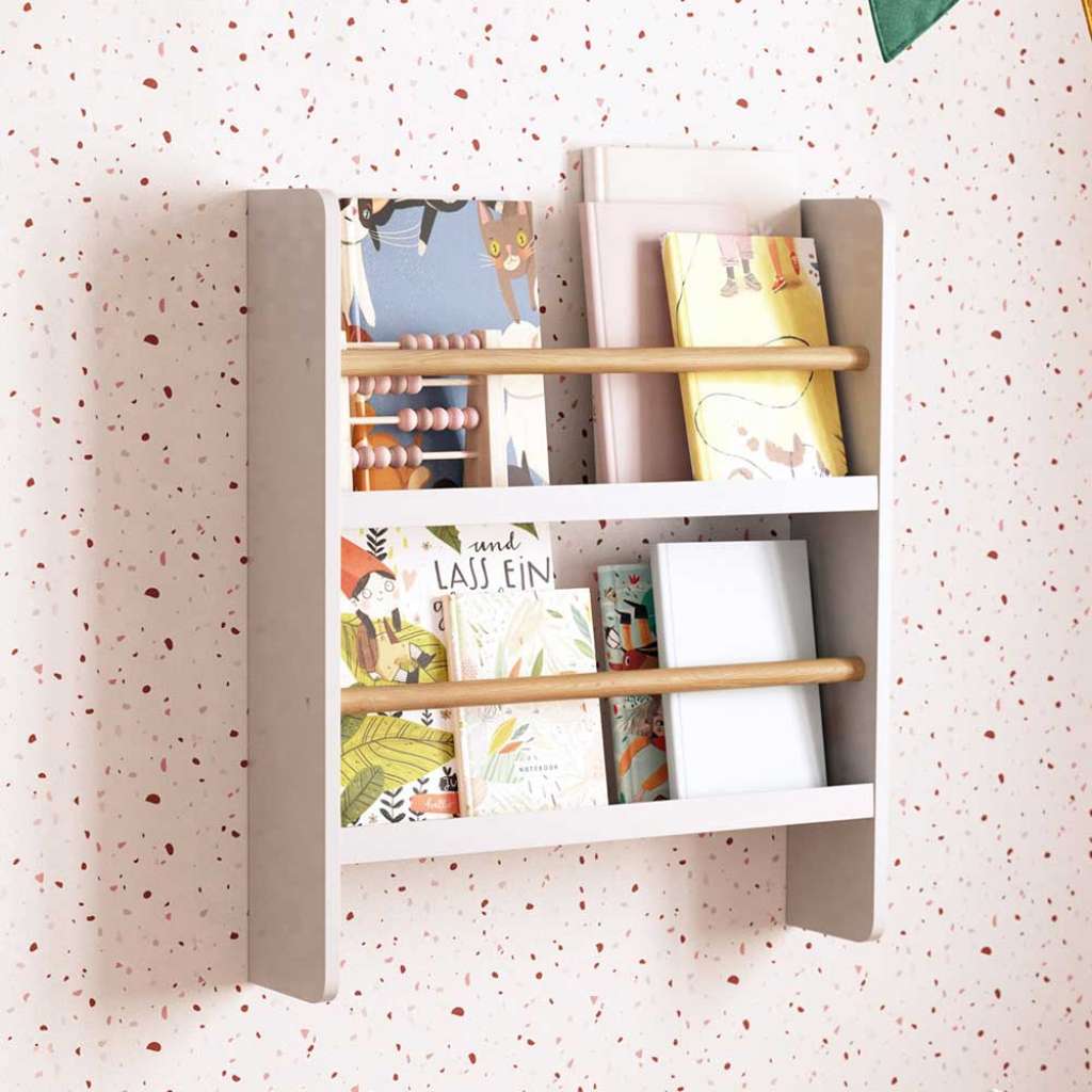 Babyzimmer Regal in Weiß und Kieferfarben Bücher