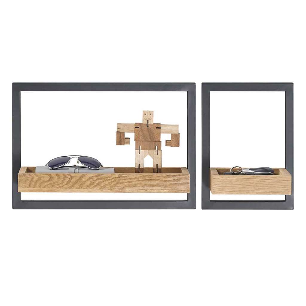 Wohnzimmerregale mit Metallrahmen 14 cm tief (zweiteilig) - Wandregal 66 cm Breit, 30 cm Hoch, 14 cm Tief - Wandboard aus Holzwerkstoff und Metall - Furniert und geölt - Hängeregal in Eichefarben und Schwarz - Wohnzimmer Regal in modernem Design - Zerlegt, zum leichten Selbstaufbau (Montageanleitung liegt bei) - In rechteckiger Form - ZweiteiligInformationen zur Lieferung:Der Versand dieses Artikels erfolgt per DHL Paketdienst (Deutsche Post). Sollten Sie bei der Erstzustellung nicht angetroffen werden, hinterläßt der Zusteller in Ihrem Briefkasten eine Benachrichtigungskarte. Sie können die Ware dann in Ihrer Postfiliale vor Ort abholen. Die Auslieferung erfolgt von Montags bis Samstags. Eine Zustellung an Sonn- und Feiertagen ist nicht möglich.