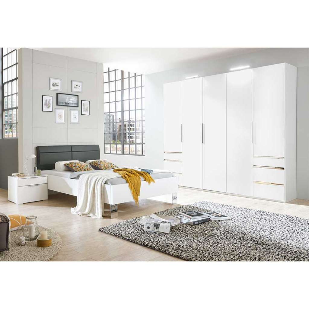 (dreiteilig) - Schlafzimmer komplett 250 cm Breit, 222 cm Hoch, 58 cm Tief - Mit einer Liegefläche von 140x200 - Breite Variante ist mind. benötigte Gesamtfläche, Einzelmaße sind unten separat aufgeführt - In Weiß und Dunkelgrau - Mit LED Beleuchtung - Für Energieeffizienzklasse LED - Foliert - Aus deutscher Produktion - Aus Spanplatte - In modernem Design - Zerlegt, zum leichten Selbstaufbau (Montageanleitung liegt bei) - DreiteiligInformationen zur Lieferung:Der Versand dieses Artikels erfolgt per DHL-Superservice. Dieses beinhaltet folgenden Service für Sie:Terminvereinbarung: Sie werden frühzeitig (ein paar Tage im Voraus) durch die ausliefernde Spedition kontaktiert und Ihnen der Auslieferzeitpunkt mitgeteilt. Die Kontaktaufnahme erfolgt per Telefon. Bei telefonischer Nichterreichbarkeit werden Sie per Postkarte über das Auslieferdatum informiert.Lieferung Frei Verwendungsstelle: Der Transport erfolgt an Ort und Stelle. Sie bestimmen, wohin Sie die Ware getragen haben möchten. Ob Dachgeschoss, Erdgeschoss, Schlaf- oder Wohnzimmer - die Ware wird an den von Ihnen gewünschten Ort vertragen.Zwei Speditionsfahrer vertragen die Ware: keine Mithilfe beim Entladen und Vertragen der Ware nötig. Die Speditionsfahrer sind auf den Möbeltransport spezialisiert und entsprechend geschult, somit sind Transportreklamationen nahezu ausgeschlossen.Die Auslieferung erfolgt von Montags bis Freitags. Eine Zustellung an Sonn- und Feiertagen ist nicht möglich.Alle aufgeführten Serviceleistungen sind im Artikelpreis enthalten. Es fallen keine weiteren Kosten für Sie an. Bei Insellieferungen kann nur ein reiner Abgabeservice angeboten werden - das Vertragen der Ware + Verpackungsentsorgung entfällt hierbei.