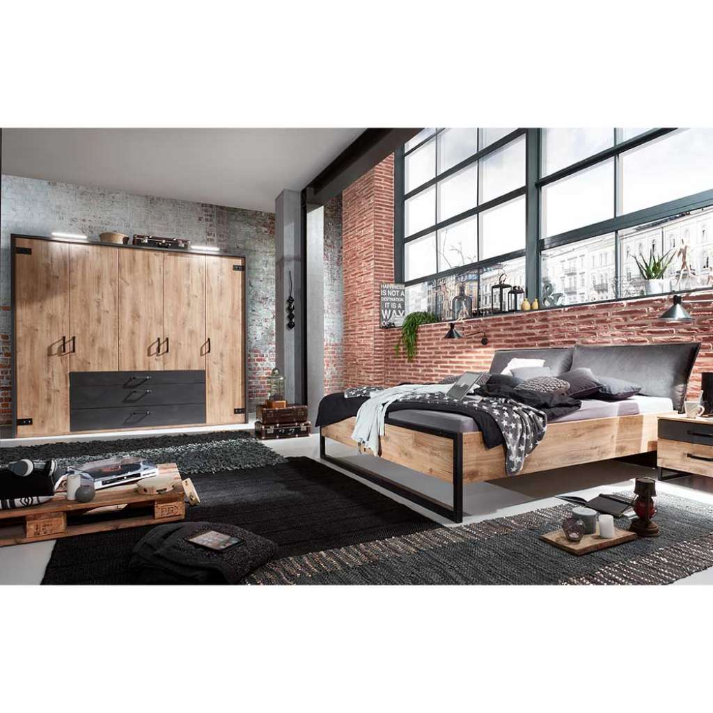 Informationen über Industrie und Loft Schlafzimmerset in Plankeneiche NB Schwarzgrau (vierteilig)