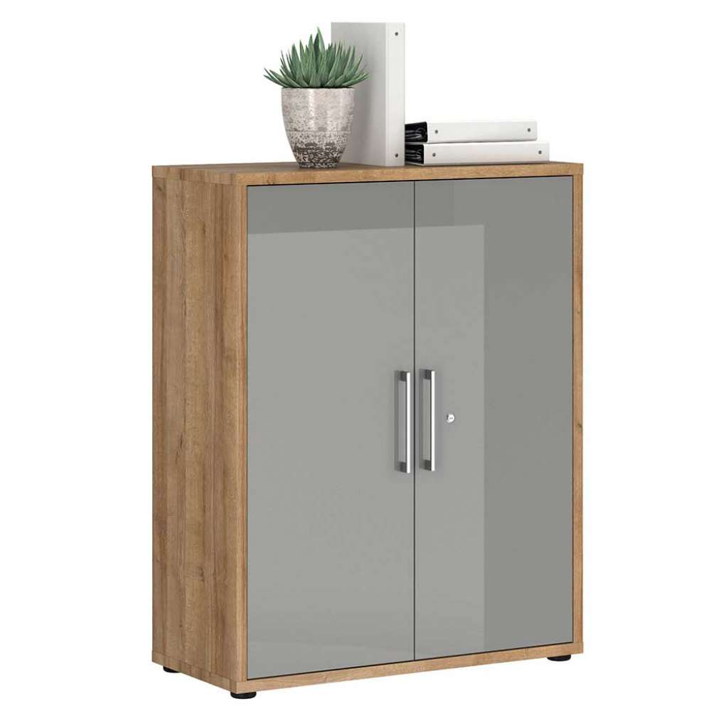 Aktenschrank Büro in Hellgrau Hochglanz Eichefarben