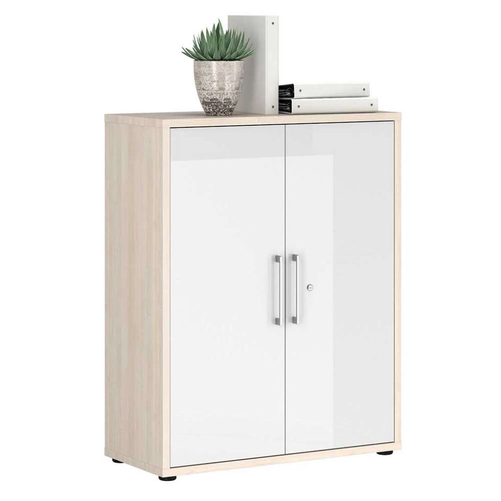 Officeschrank abschließbar in Weiß Hochglanz Holz White Wash