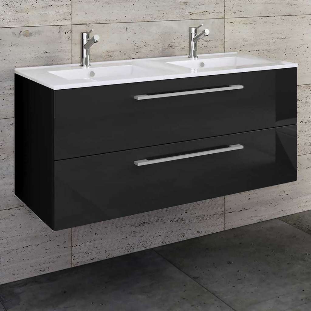 Doppel Waschtischschrank in Schwarz Hochglanz Front zwei Schubladen