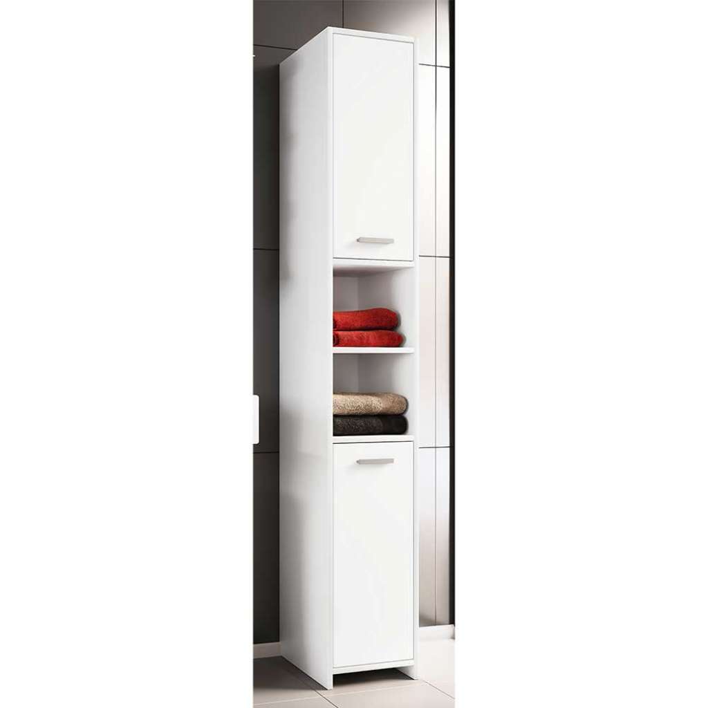 Badezimmerhochschrank in Weiß zwei Drehtüren und offenen Fächern - Mit drei Einlegeböden je Facheinheit - 2 türig, Innenaufteilung: Mit Einlegeböden - Zerlegt, zum leichten Selbstaufbau (Montageanleitung liegt bei) - In modernem Design - In Weiß - Melaminbeschichtet - Mit Türen wahlweise rechts und links montierbar - Mit Kunststoffgriffen - Aus Holzwerkstoff - Badseitenschrank 30 cm Breit, 180 cm Hoch, 31 cm TiefInformationen zur Lieferung:Der Versand dieses Artikels erfolgt per DHL Paketdienst (Deutsche Post). Sollten Sie bei der Erstzustellung nicht angetroffen werden, hinterläßt der Zusteller in Ihrem Briefkasten eine Benachrichtigungskarte. Sie können die Ware dann in Ihrer Postfiliale vor Ort abholen. Die Auslieferung erfolgt von Montags bis Samstags. Eine Zustellung an Sonn- und Feiertagen ist nicht möglich.