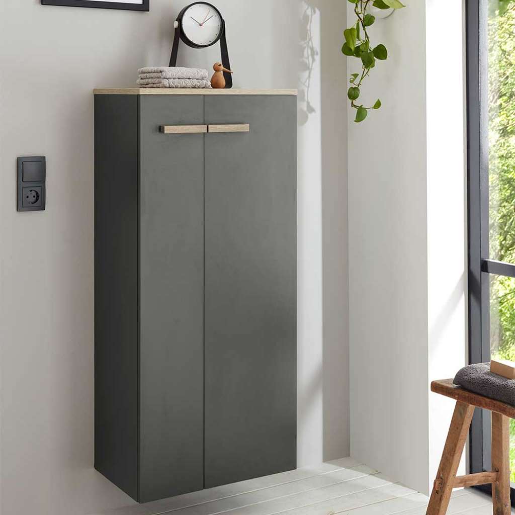 Midischrank für Bad in Eiche Holzoptik & Anthrazit melaminbeschichtet