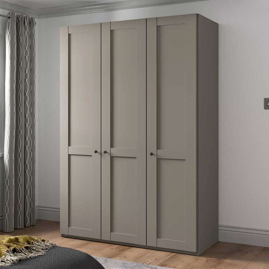Drehtürschrank Landhaus modern in Hellgrau Made in Germany - Mit einer festen Kleiderstange je Facheinheit und zwei Einlegeböden je Facheinheit - 3 türig mit Türdämpfung, Innenaufteilung: Mit Kleiderstange und Einlegeböden - Zerlegt, zum leichten Selbstaufbau (Montageanleitung liegt bei) - Aus Spanplatte - Mit Metallgriffen - Aus deutscher Produktion - Foliert - Im Landhausstil - In Hellgrau - Schlafzimmerkleiderschrank 150 cm Breit, 216 cm Hoch, 58 cm TiefInformationen zur Lieferung:Der Versand dieses Artikels erfolgt per DHL-Superservice. Dieses beinhaltet folgenden Service für Sie:Terminvereinbarung: Sie werden frühzeitig (ein paar Tage im Voraus) durch die ausliefernde Spedition kontaktiert und Ihnen der Auslieferzeitpunkt mitgeteilt. Die Kontaktaufnahme erfolgt per Telefon. Bei telefonischer Nichterreichbarkeit werden Sie per Postkarte über das Auslieferdatum informiert.Lieferung Frei Verwendungsstelle: Der Transport erfolgt an Ort und Stelle. Sie bestimmen, wohin Sie die Ware getragen haben möchten. Ob Dachgeschoss, Erdgeschoss, Schlaf- oder Wohnzimmer - die Ware wird an den von Ihnen gewünschten Ort vertragen.Zwei Speditionsfahrer vertragen die Ware: keine Mithilfe beim Entladen und Vertragen der Ware nötig. Die Speditionsfahrer sind auf den Möbeltransport spezialisiert und entsprechend geschult, somit sind Transportreklamationen nahezu ausgeschlossen.Die Auslieferung erfolgt von Montags bis Freitags. Eine Zustellung an Sonn- und Feiertagen ist nicht möglich.Alle aufgeführten Serviceleistungen sind im Artikelpreis enthalten. Es fallen keine weiteren Kosten für Sie an. Bei Insellieferungen kann nur ein reiner Abgabeservice angeboten werden - das Vertragen der Ware + Verpackungsentsorgung entfällt hierbei.