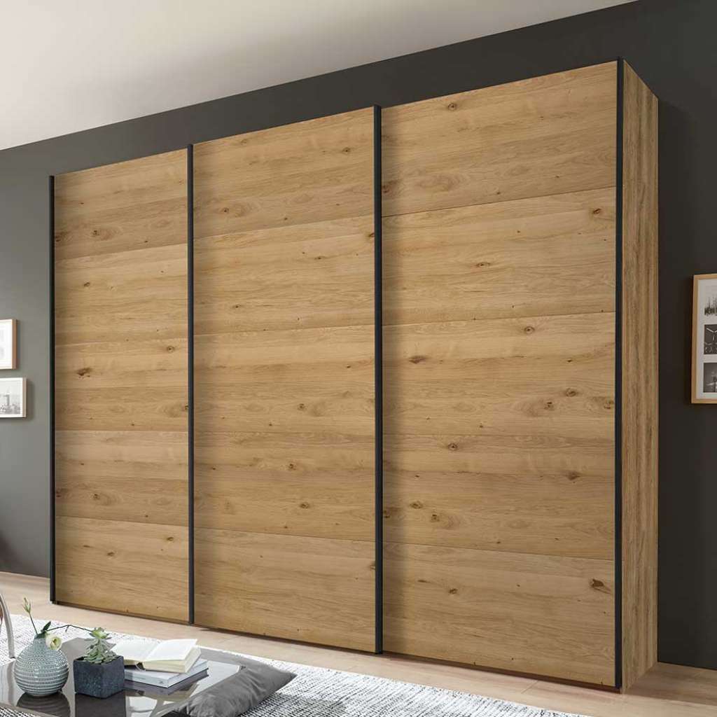 Gleittürenschrank in Wildeiche Bianco und Dunkelgrau 300 cm breit