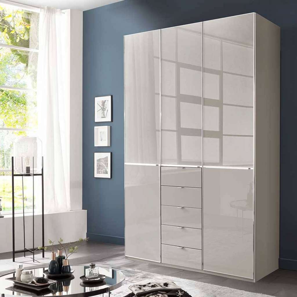 Schlafzimmerkleiderschrank Schlafzimmerschrank mit fünf Schubladen in Hellgrau - Mit einer festen Kleiderstange und zwei verstellbare Einlegeböden - 3 türig mit gedämpften Metallbeschlägen, Innenaufteilung: Mit Kleiderstange und Einlegeböden - Mit Sockelgestell - Zerlegt, zum leichten Selbstaufbau (Montageanleitung liegt bei) - In modernem Design - Aus Spanplatte - Mit Metallgriffen - Aus deutscher Produktion - In Hellgrau - Foliert und Front glasbeschichtet - Mit fünf Schubladen mit Soft Close, Selbsteinzug und auf Metallauszug - Drehtürenschrank 150 cm Breit, 236 cm Hoch, 58 cm TiefInformationen zur Lieferung:Der Versand dieses Artikels erfolgt per DHL-Superservice. Dieses beinhaltet folgenden Service für Sie:Terminvereinbarung: Sie werden frühzeitig (ein paar Tage im Voraus) durch die ausliefernde Spedition kontaktiert und Ihnen der Auslieferzeitpunkt mitgeteilt. Die Kontaktaufnahme erfolgt per Telefon. Bei telefonischer Nichterreichbarkeit werden Sie per Postkarte über das Auslieferdatum informiert.Lieferung Frei Verwendungsstelle: Der Transport erfolgt an Ort und Stelle. Sie bestimmen, wohin Sie die Ware getragen haben möchten. Ob Dachgeschoss, Erdgeschoss, Schlaf- oder Wohnzimmer - die Ware wird an den von Ihnen gewünschten Ort vertragen.Zwei Speditionsfahrer vertragen die Ware: keine Mithilfe beim Entladen und Vertragen der Ware nötig. Die Speditionsfahrer sind auf den Möbeltransport spezialisiert und entsprechend geschult, somit sind Transportreklamationen nahezu ausgeschlossen.Die Auslieferung erfolgt von Montags bis Freitags. Eine Zustellung an Sonn- und Feiertagen ist nicht möglich.Alle aufgeführten Serviceleistungen sind im Artikelpreis enthalten. Es fallen keine weiteren Kosten für Sie an. Bei Insellieferungen kann nur ein reiner Abgabeservice angeboten werden - das Vertragen der Ware + Verpackungsentsorgung entfällt hierbei.