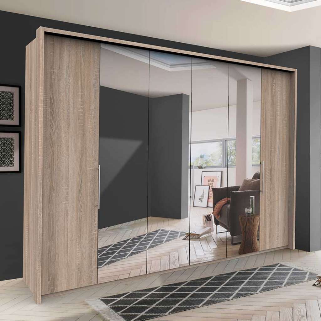 Informationen über Spiegel Kleiderschrank mit drei Falttüren Eiche Sägerau