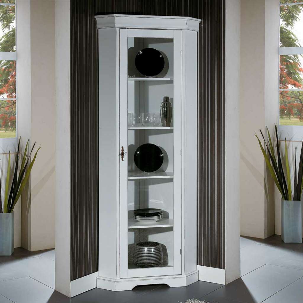 Großer Eckvitrinenschrank in Antikweiß Vintage Look