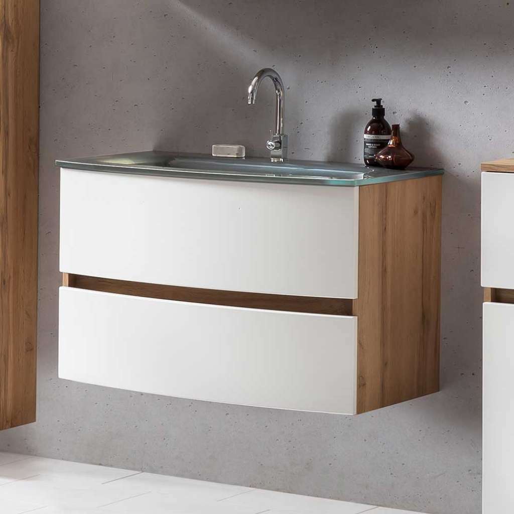 Waschbeckenunterschrank in Weiß und Wildeiche Optik Made in Germany