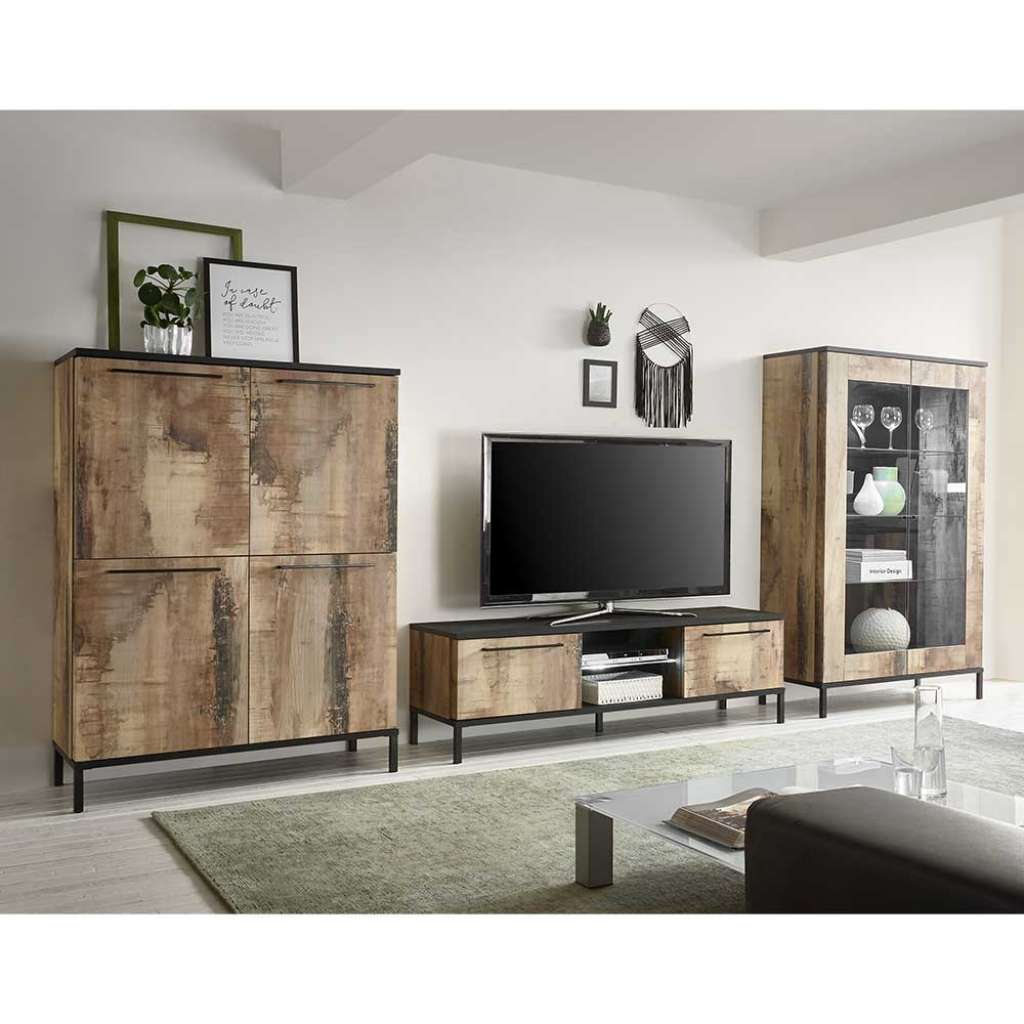 (dreiteilig) - Fernseher schrankwand 368 cm Breit, 178 cm Hoch, 50 cm Tief - Designer Wohnwand in Holz verwittert und Schwarz - Anbauwand aus Holzwerkstoff und Metall - Melaminbeschichtet und lackiert - Mit Metallgriffen - In modernem Design - Zerlegt, zum leichten Selbstaufbau (Montageanleitung liegt bei) - Dreiteilig - Mit Kabeldurchlass an der RückwandVarianten - 001: Standardausführung - 002: mit LED Beleuchtung / für Energieeffizienzklasse LEDInformationen zur Lieferung:Der Versand dieses Artikels erfolgt per DHL-Superservice. Dieses beinhaltet folgenden Service für Sie:Terminvereinbarung: Sie werden frühzeitig (ein paar Tage im Voraus) durch die ausliefernde Spedition kontaktiert und Ihnen der Auslieferzeitpunkt mitgeteilt. Die Kontaktaufnahme erfolgt per Telefon. Bei telefonischer Nichterreichbarkeit werden Sie per Postkarte über das Auslieferdatum informiert.Lieferung Frei Verwendungsstelle: Der Transport erfolgt an Ort und Stelle. Sie bestimmen, wohin Sie die Ware getragen haben möchten. Ob Dachgeschoss, Erdgeschoss, Schlaf- oder Wohnzimmer - die Ware wird an den von Ihnen gewünschten Ort vertragen.Zwei Speditionsfahrer vertragen die Ware: keine Mithilfe beim Entladen und Vertragen der Ware nötig. Die Speditionsfahrer sind auf den Möbeltransport spezialisiert und entsprechend geschult, somit sind Transportreklamationen nahezu ausgeschlossen.Die Auslieferung erfolgt von Montags bis Freitags. Eine Zustellung an Sonn- und Feiertagen ist nicht möglich.Alle aufgeführten Serviceleistungen sind im Artikelpreis enthalten. Es fallen keine weiteren Kosten für Sie an. Bei Insellieferungen kann nur ein reiner Abgabeservice angeboten werden - das Vertragen der Ware + Verpackungsentsorgung entfällt hierbei.