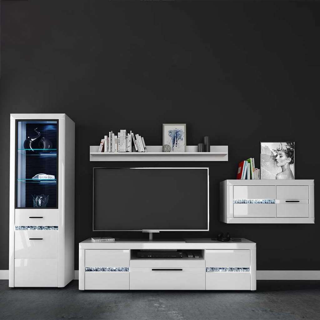 Anbauwand in Weiß Hochglanz LED Beleuchtung (4-teilig)